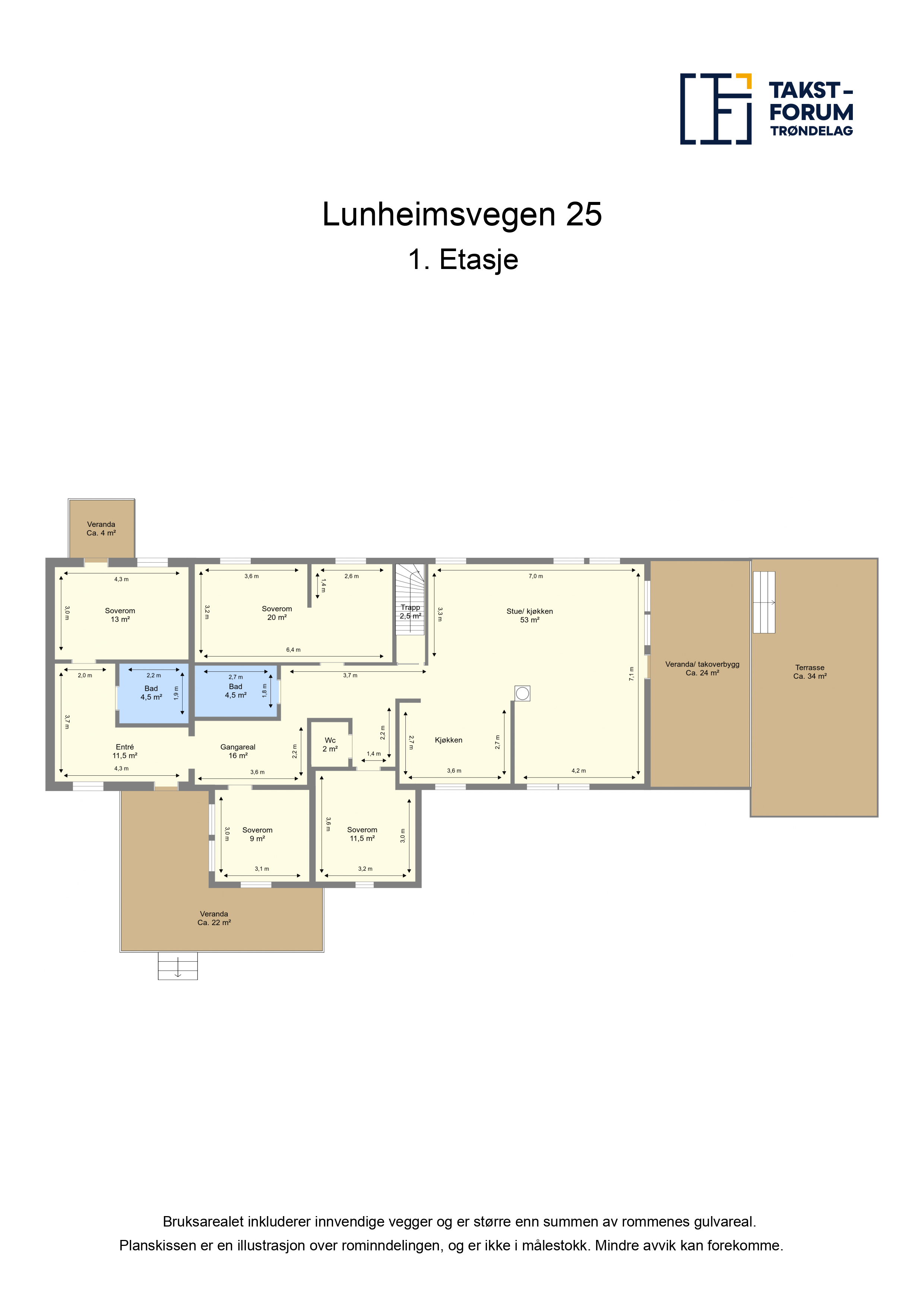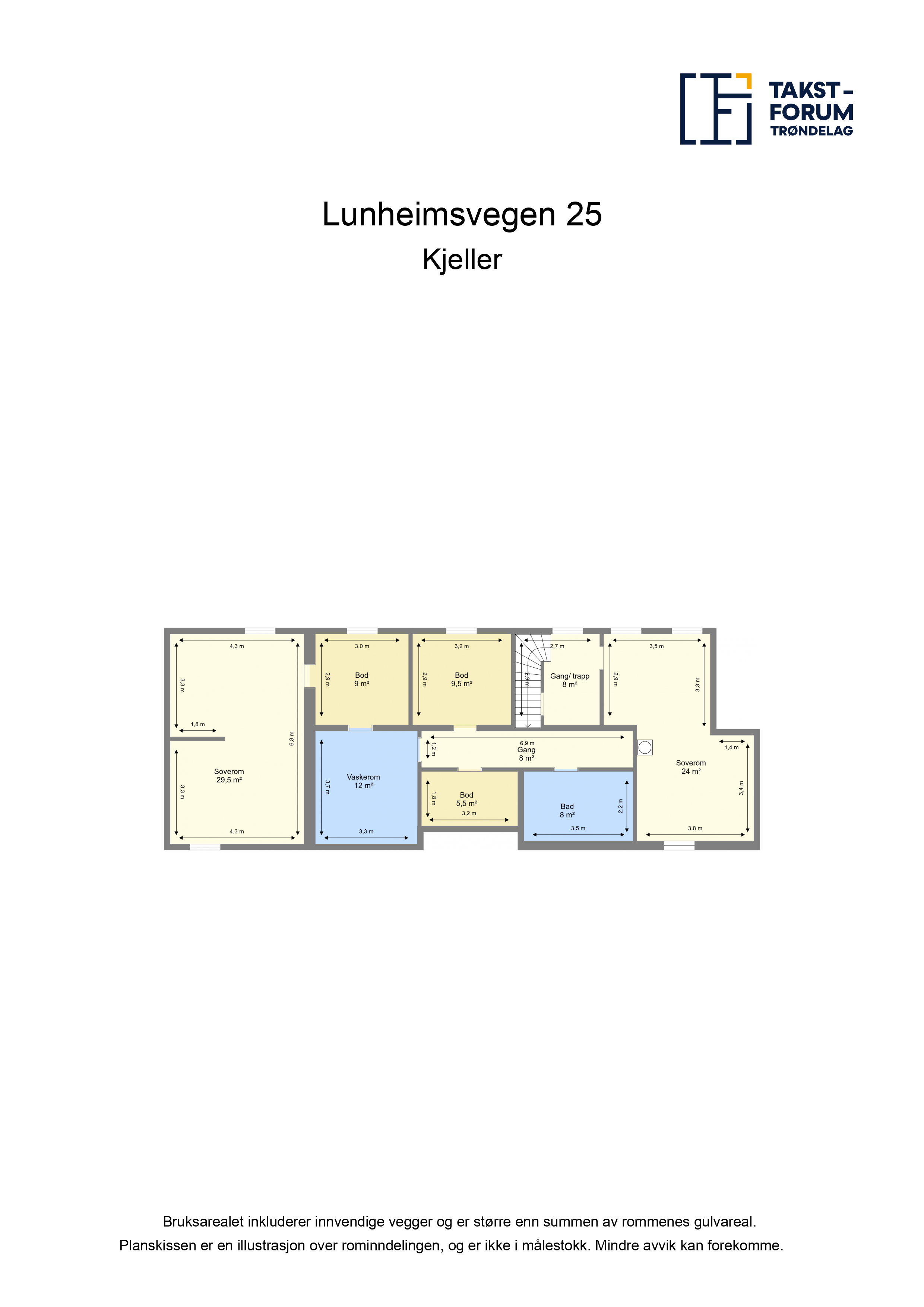 AREAL Areal i salgsoppgaven er hentet fra tilstandsrapporten. Boligens areal oppgis i BRA (bruksareal), som deles i underkategoriene BRA-i (arealet innenfor boenheten), BRA-e (arealet utenfor boenheten(e) og som tilhører denne, slik som for eksempel boder hvor adkomsten er utenfor boenheten), og BRA-b (arealet av innglasset balkong, veranda eller altan når denne er tilknyttet boenheten). TBA er arealet av terrasser, åpne balkonger og åpen altan tilknyttet boenheten. Arealoppmåling er foretatt av takstmann etter bransjestandarden "Takstbransjens retningslinjer ved arealmåling av boliger". Retningslinjene har NS 3940:2012 som utgangspunkt, men inneholder presiseringer for arealbegreper og definisjoner i forbindelse med arealmåling. De forskjellige rom i boligen er beskrevet etter dagens bruk av rommet på befaringstidspunktet, selv om bruken av rommet kan være i strid med tidligere eller gjeldende byggeforskrifter. Benevnelsen av de enkelte rom fastsettes etter skjønn fra takstmannen. D-NUMMER Dersom kjøper er utenlandsk statsborger kreves det at vedkommende har D-nummer til erstatning for norsk personnummer. Søknad om D-nummer sendes til Kartverket samtidig med innsending av skjøtet for tinglysing. Kartverket oppbevarer skjøtet inntil kjøper har fått D-nummer av skatteetaten. Skjøtet vil bli tinglyst så snart Kartverket har mottatt kjøpers D-nummer fra Skatteetaten. Søknad om D-nummer i forbindelse med tinglysing av skjøte kan medføre at oppgjør og utbetaling til selger blir forsinket. Kjøper må i disse tilfellene ta forbehold i bud om at D-nummer blir gitt, samt at dette kan medføre forsinket utbetaling til selger. Kontakt megler for informasjon før budgivning. SALGSSUM Etter aksept av bud, vil eiendommens salgssum bli meddelt de som ev. måtte etterspørre denne. Eiendommens salgssum vil bli offentlig tilgjengelig ved overføring av hjemmel. FORETAKETS SAMARBEIDSPARTNERE Foretaket samarbeider med følgende foretak som tilbyr produkter eller tjenester i forbindelse med oppdraget: - Help forsikring - Södeberg & Partners - Banker i Eika-alliansen - Leverandører knyttet til Aktiv pluss (for eksempel flyttehjelp) - Leverandører knyttet til Visma Meglerfront (for eksempel strømleverandører)