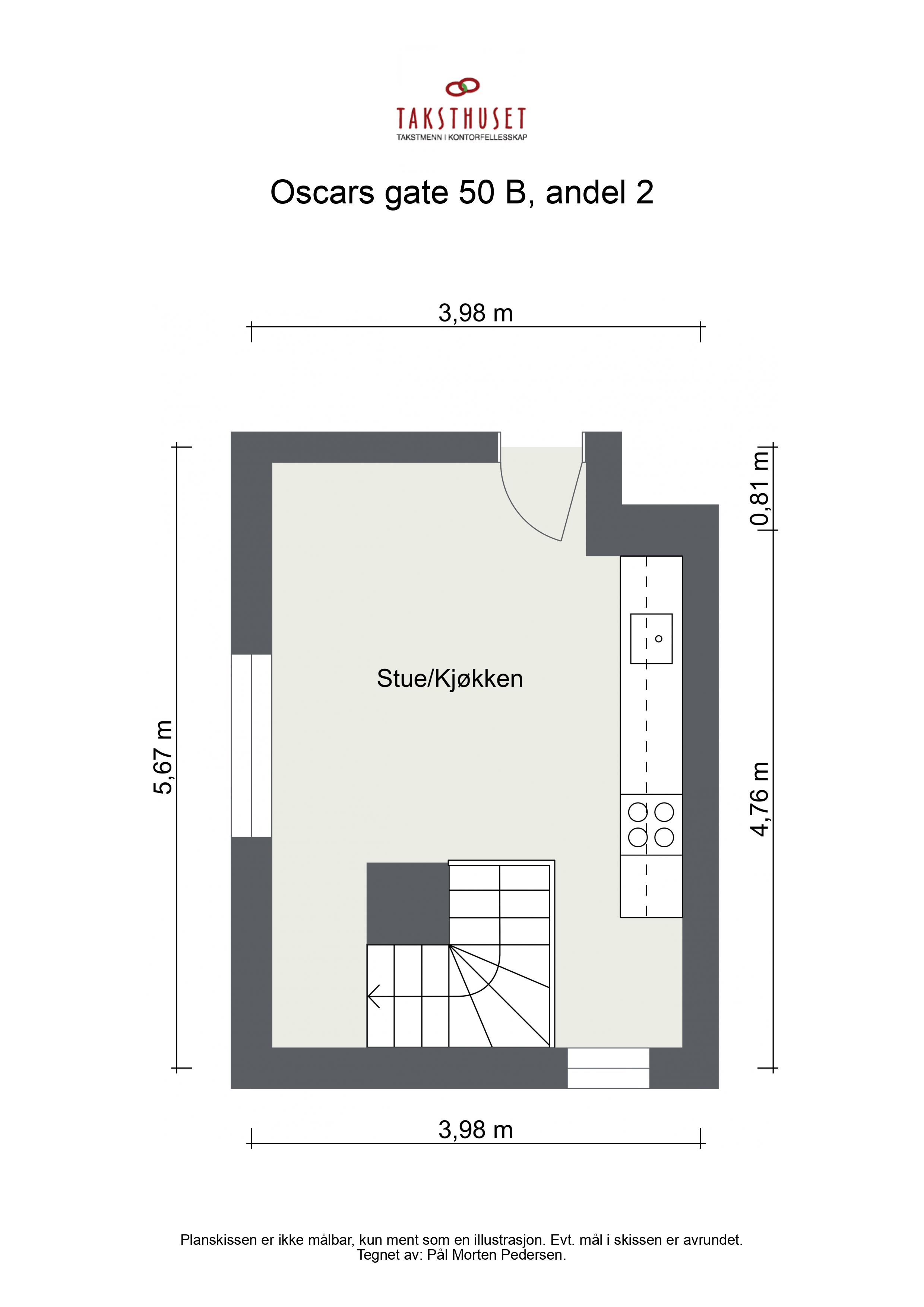 Rom under terreng: Kjelleren er innredet for boligformål. Kjelleren er modernisert i 2025. Vinduer og dører: Vinduer med 2-lags glass produsert i 2008. Lyd og brannklassifisert entredør. Det er en hvit glatt dør til badet. Etasjeskille og gulv på grunn: Kjellergulv er støpte. Etasjeskillere er trebjelkelag. Kjøkken: Hvit høyglans kjøkkeninnredning med glatte fronter. Integrert komfyr og keramisk topp. Oppvaskmaskin og kjøleskap er plassert under benkeplaten. Stål vaskekum nedfelt i tre benkeplate. Kjøkkenvifte med stålhette og antatt avtrekk ut i kanal. Trapp: Det er en tretrapp med åpne opptre. Vannrør: Det er rør i rør system. Vannrør er skiftet i forbindelse med oppgradering av bad/kjøkken, antatt i 2009. Avløpsrør: Det er antatt plast og støpejern avløpsrør. Deler av innvendige avløpsrør er skiftet i forbindelse med oppgradering av kjøkken og bad. Elektrisk: Sikringsskapet er plassert i felles trappeoppgang med automatsikringer. Bad: Det er fliser på vegger og gulv med varmekabler. Badet er rehabilitert/pusset opp antatt i 2009. På badet er det servant med servantskap, veggfestet toalett med skjult sisterne, dusjkabinett med glassvegger/dører. Opplegg for vaskemaskin. Varmtvannsbereder. Det er naturlig ventilasjonen med lufteluke i taket. Det er en smal til tilluftspalte ved døren. Gulv: Det er 3- stavs parkett i første etasje, fliser i kjelleren. Vegger: Det er malte slette veggoverflater. Himling: Det er malte tak overflater. Takhøyden i kjelleren er 264 cm, 297 cm i første etasje. Info fra takstmann: En lys og pen leilighet beliggende i ett populært boligområde på Frogner. Leiligheten er beliggende i 1. etasje og kjeller. Klassisk bygård fra 1889. Det er kort vei til Uranienborgparken, Slottsparken og Frognerparken, midt i hjertet av Oslo vest. Gaten er enveiskjørt og er derfor stille med lite trafikk. Det er normalt god standard over innredninger, overflater og utstyr, men naturlig vedlikehold må påregnes noen steder. Forhold som har fått tilstandsgrad 2: -Rom under terreng -Trapp -Elektrisk -Varmtvannsbered -Ventilasjon -Bad For komplett oversikt se vedlagt tilstandsrapport.