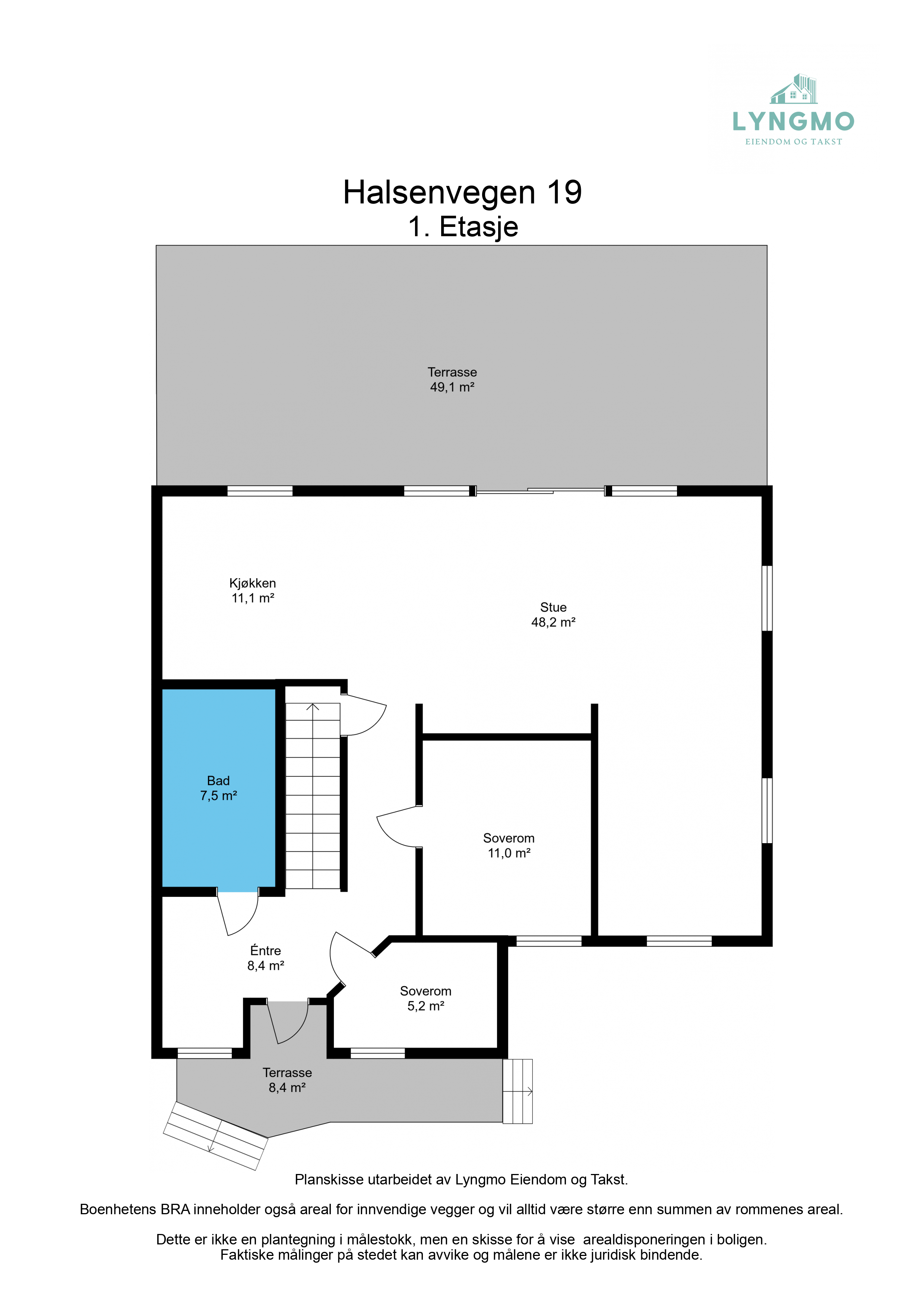 - Tatt fra takstrapporten: Boligens planløsning og ulovlighetsmangler er kontrollert opp mot kommunepakken. Siste godkjente bygningstegninger er fra 26.03.2010 og samsvarer med dagens utforming av boligen. Det bemerkes at enkelte vinduer i kjeller rom for varig opphold er plassert mer enn 1m over gulv. Ved avstand over 1m må det være et fastmontert møbel med maks høyde 1m over ferdig gulv under vindu. Pga montert solskjerming kan ikke vinduer i kjeller for rømning åpnes tilstrekkelig. Disse anbefales da fjernet/endret slik at tilstrekkelig åpning opprettholdes. - Selger har kledd igjen dør fra hybelleiligheten til hovedboligen. Dette avviker fra ?byggegodkjente tegninger. Det er mulig å montere dør hvor dør et tegnet inn. - Det foreligger ikke midlertidig brukstillatelse eller ferdigattest på garasje.