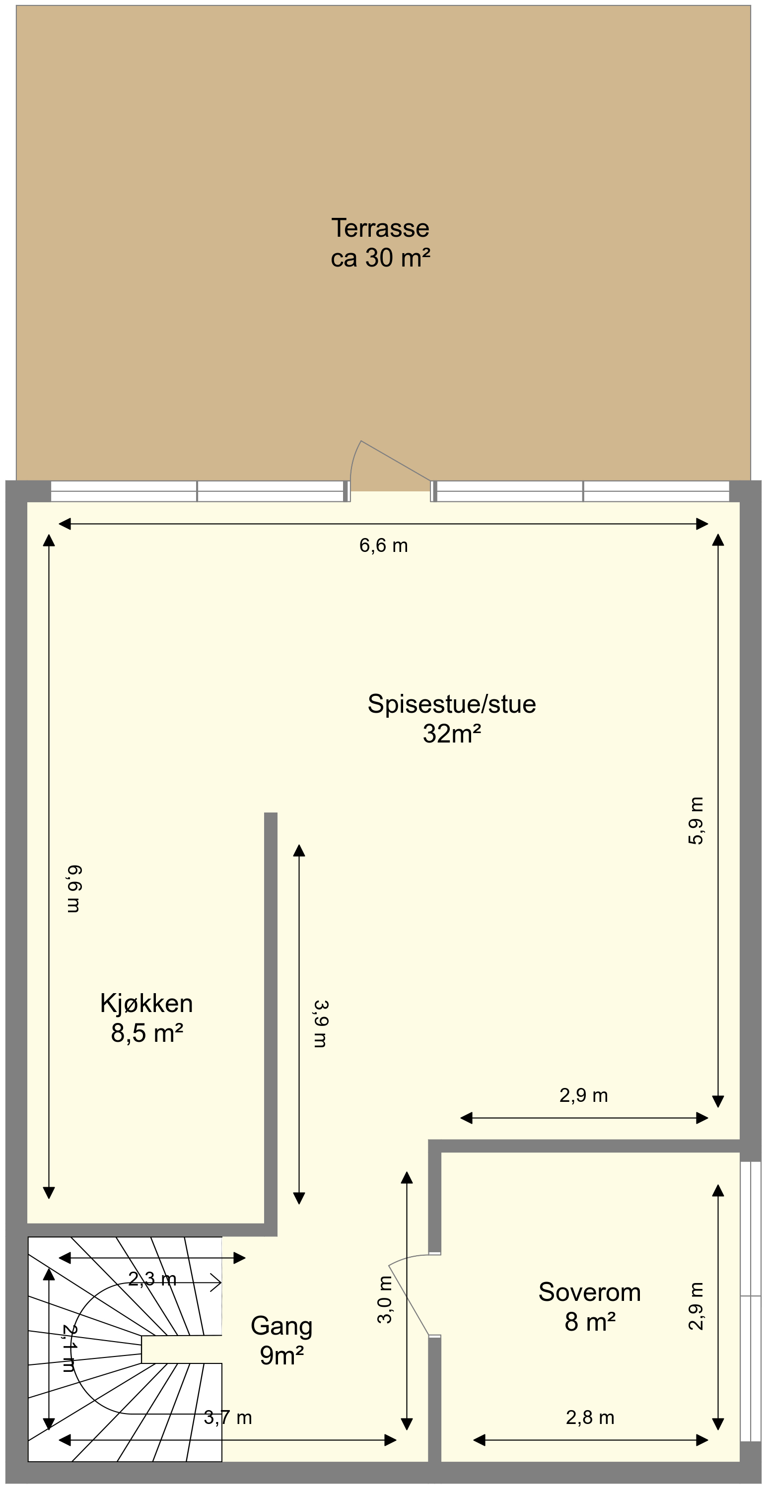 - Gode vindusflater som byr på godt med naturlig belysning.