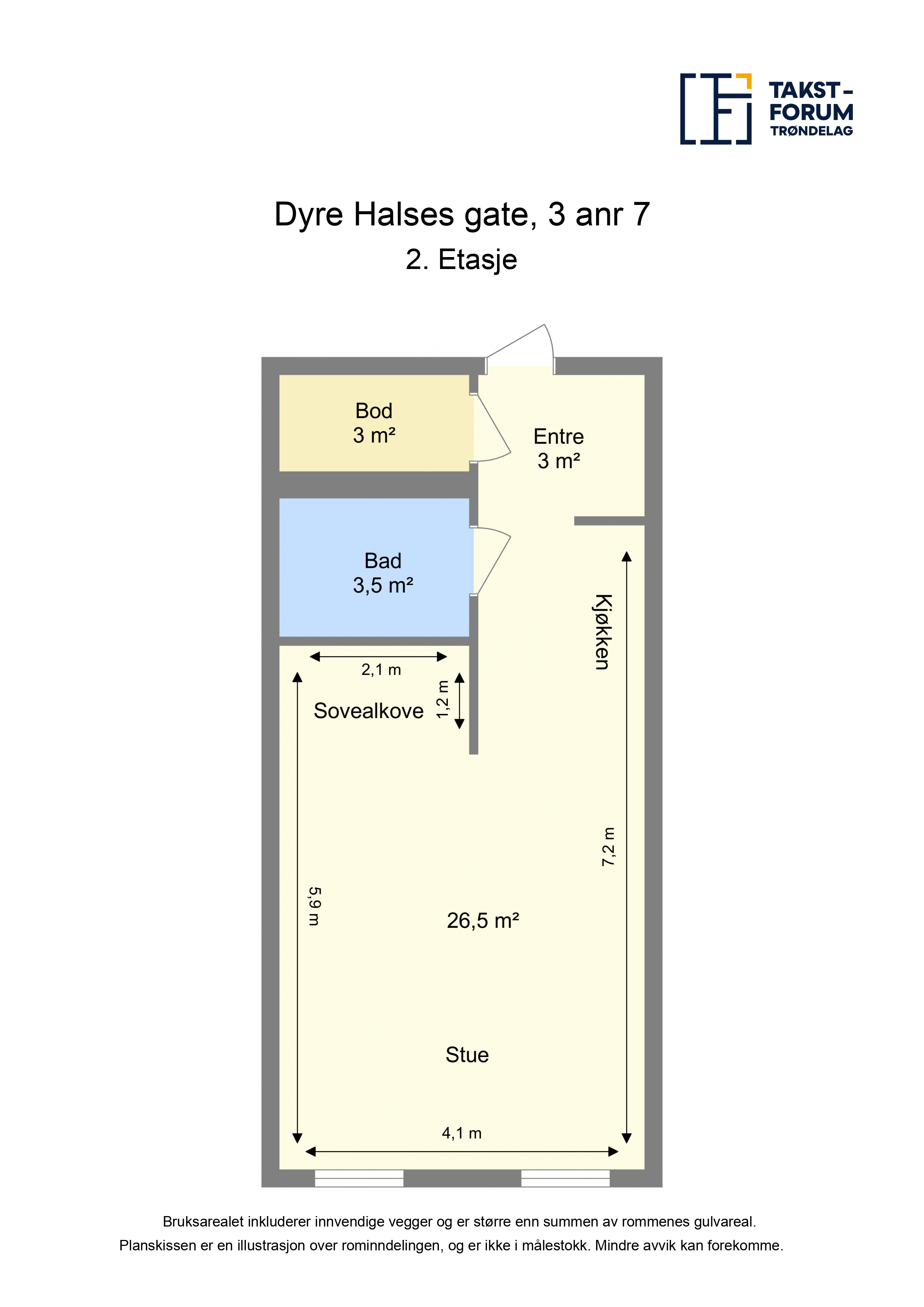 AREAL Areal i salgsoppgaven er hentet fra tilstandsrapporten. Boligens areal oppgis i BRA (bruksareal), som deles i underkategoriene BRA-i (arealet innenfor boenheten), BRA-e (arealet utenfor boenheten(e) og som tilhører denne, slik som for eksempel boder hvor adkomsten er utenfor boenheten), og BRA-b (arealet av innglasset balkong, veranda eller altan når denne er tilknyttet boenheten). TBA er arealet av terrasser, åpne balkonger og åpen altan tilknyttet boenheten. Arealoppmåling er foretatt av takstmann etter bransjestandarden "Takstbransjens retningslinjer ved arealmåling av boliger". Retningslinjene har NS 3940:2012 som utgangspunkt, men inneholder presiseringer for arealbegreper og definisjoner i forbindelse med arealmåling. De forskjellige rom i boligen er beskrevet etter dagens bruk av rommet på befaringstidspunktet, selv om bruken av rommet kan være i strid med tidligere eller gjeldende byggeforskrifter. Benevnelsen av de enkelte rom fastsettes etter skjønn fra takstmannen. D-NUMMER Dersom kjøper er utenlandsk statsborger kreves det at vedkommende har D-nummer til erstatning for norsk personnummer. Søknad om D-nummer sendes til Kartverket samtidig med innsending av skjøtet for tinglysing. Kartverket oppbevarer skjøtet inntil kjøper har fått D-nummer av skatteetaten. Skjøtet vil bli tinglyst så snart Kartverket har mottatt kjøpers D-nummer fra Skatteetaten. Søknad om D-nummer i forbindelse med tinglysing av skjøte kan medføre at oppgjør og utbetaling til selger blir forsinket. Kjøper må i disse tilfellene ta forbehold i bud om at D-nummer blir gitt, samt at dette kan medføre forsinket utbetaling til selger. Kontakt megler for informasjon før budgivning. SALGSSUM Etter aksept av bud, vil eiendommens salgssum bli meddelt de som ev. måtte etterspørre denne. Eiendommens salgssum vil bli offentlig tilgjengelig ved overføring av hjemmel. SAMARBEIDSPARTNERE Foretaket og Aktiv-kjeden har flere samarbeidspartnere som tilbyr produkter eller tjenester i forbindelse med gjennomføringen av megleroppdraget: - I forbindelse med forberedelse av salget, innhenter vi informasjon om eiendommen hovedsakelig fra vår samarbeidspartner Ambita - Fremtind leverer boligselgerforsikring, samt tilbyr andre forsikringer - Help Forsikring leverer boligkjøperforsikring - Vend Marketplaces, eier av annonseplattformen Finn.no - Overo leverer oppgjørsskjema og overtakelsesprotokoll. Kundene tilbys ulike leverandører for strøm og alarm avhengig av tilbydere i området. Meglerforetaket mottar betaling for tilleggstjenestene. - Banker i Eika-alliansen tilbyr finansielle tjenester - Signicat leverer digitale løsninger for signering av dokumenter - Vitec Megler leverer salgsstøttesystemet, herunder elektronisk løsning for budgivning